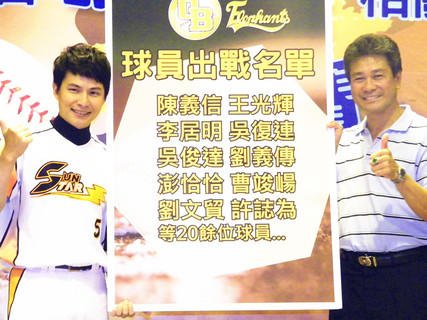 明星公益棒球賽記者會上,陳義信嗆「不打假球」,要打爆藝人隊。「2014明星公益棒球賽」將於26日開打,由藝人孫協志與浩角翔起的阿翔領軍的藝人隊,出戰前兄弟象球星組成的隊伍,包括「假日飛刀手」陳義信、「棒球...