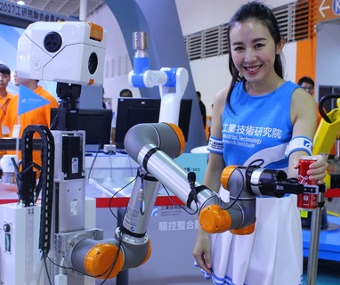 新型行動機器人「Q比」以運作自如的機械手為民眾拿飲料,引來群眾擠爆展館,爭先一睹「Q比」的魅力。工研院智慧機器人技術組代理組長游鴻修受訪時表示,工業4.0的關鍵在於智慧機械擁有高度自由的彈性操作空間,加以...