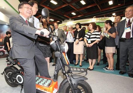「叭!叭!叭!冰淇淋來嘍!」經濟部部長李世光29日出席台北國際發明暨技術交易展開幕典禮,當他坐上工業技術研究院展示「可快速充電金屬離子電池」的電動摩托車,他按著喇叭說:「我好像在賣冰淇淋!」引起大家一陣笑...