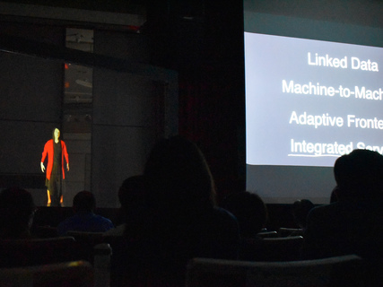數位政委唐鳳工作效率果然高!人在行政院開會,虛擬分身則出現在工研院研討會現場,與大家分享「政府開放式服務整合」及「雲端技術應用」的實務經驗。與會來賓更戴上虛擬實境眼鏡,「穿越」到唐鳳的辦公室,揣摩在「雲端...
