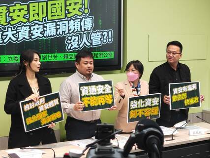 「數位發展部已主責我國資通安全防護,為何衛福部仍有全民個資外洩?應制定跨部會強化資安計畫!」民進黨立委洪申翰、劉世芳、賴品妤與莊競程18日召開記者會,槍口對內痛批數發部、國發會資安防護漏洞百出,他們呼籲數...