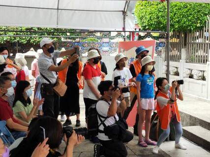 讓小朋友來導覽萬華!台北市文化局3日在龍山寺舉行艋舺「小小導覽員」結訓典禮,20位小朋友結訓成為導覽員。他們戴著「小小導覽員」的漁夫帽,手中拿著自己繪製、五彩繽紛的地圖,為民眾們詳細解說龍山寺的古往今來。...