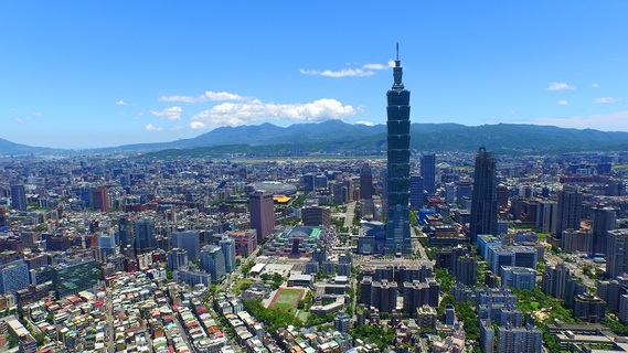 中度颱風尼伯特逼近台灣,5日台北市氣溫來到38度,由於熱氣流上升影響,空中懸浮微粒被一掃而空,使台北盆地出現難得的晴空萬里景象。 從空中鳥瞰整個台北信義區,不僅101大樓宏偉地矗立在眼前,甚至可以遠...