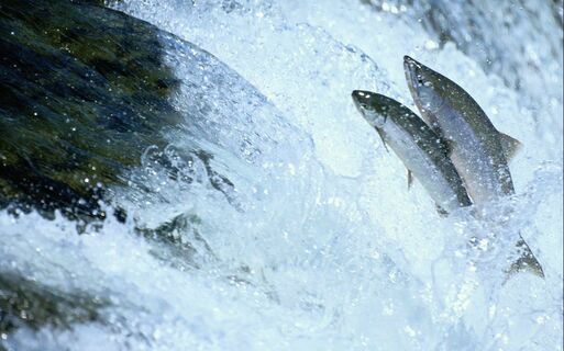 每年七至九月是鮭魚回游的季節,一群一群的鮭魚,不吃不喝,以每天近三十公里的速度,逆流而上,由大海游回誕生的河流產卵,綿延後代。透過電視鏡頭,我們可以看到許多回游的鮭魚都受傷纍纍。 ##逆流而上很辛苦...