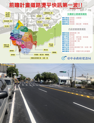 為提供市民更安心的用路環境,台中市政府積極推動道路燙平,已突破千條道路,近期持續推動22條路段燙平,同時納入路口無障礙斜坡道、施作行人庇護島、路口行穿線退縮等友善人行環境的設施作業。 建設局表示,市...