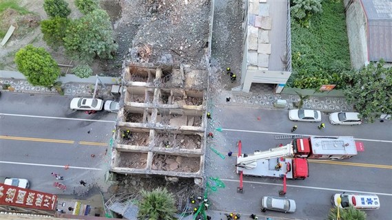 十月一日下午3時46分,花蓮火車站前國聯五路鬧市大街上一棟拆除中的老飯店轟然倒塌,一輛機車從即將著地的樓體下機警逃離,生死一瞬間;而倒塌大樓樓頂的鋼筋掃過對面另一高樓飯店,毫髮無傷。 ##工程文化亟...