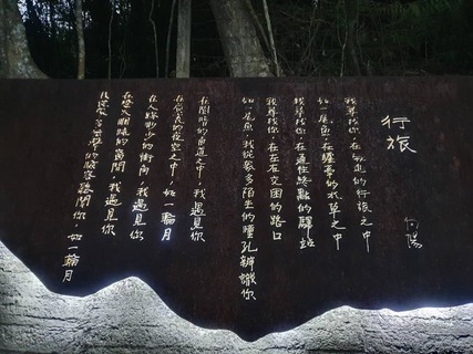 幾天前,剛榮獲《文訊雜誌》21上升星座獎項的散文家賴鈺婷捎來短訊,說她在日月潭涵碧步道看到我的詩,並附了她拍的照片。 照片上,我的詩〈行旅〉站在步道旁,安靜,且因時光走過而略顯蒼茫,符合旅人的心情。...