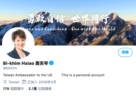 正式官銜為「台北經濟文化代表處代表」的蕭美琴,日前在推特上擅自將「自我簡介」修改為Taiwan Ambassador to the US(台灣駐美大使),引發外界高度關切。 特別是,時值美國國務院次...