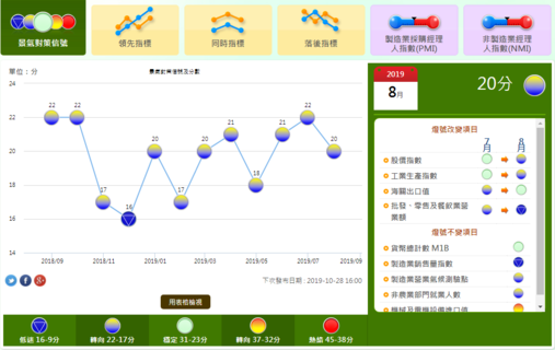 根據經濟部統計,今年8月台灣外銷接單金額是400.5億美元,年減8.3%,已是連續10個月衰退,令人擔憂。國內經濟情勢,未如政府預期的樂觀。即使有台商回流的利多,短期對經濟的幫助也不大。 ##貨幣政...