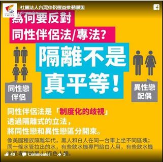 針對民進黨立院總召柯建銘提出,以另立專法來保護同志婚姻,而不是修改民法的看法,被批評為是蔡政府髮夾彎,以及歧視同婚者。 其次,婚姻平權、同性婚姻是對婚姻很大的顛覆與改革。例如傳統說法是,男婚女嫁,男...