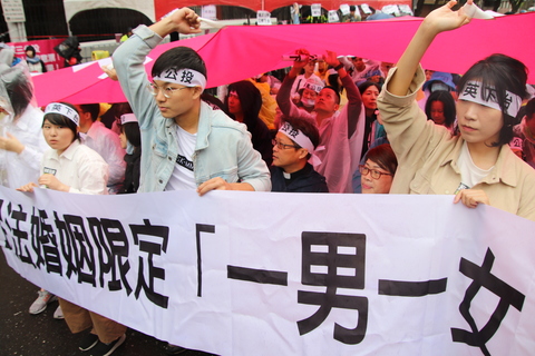 同婚法戰場自立院延燒民間!幸福盟與台灣同志家庭權益促進會8日分別於立院群賢樓前及立院大門對總統蔡英文及立委喊話,幸福盟上萬民眾表示,「小英聲稱要保護民主,卻忽略765萬選民贊成的公投。」數十組同志家庭則強...