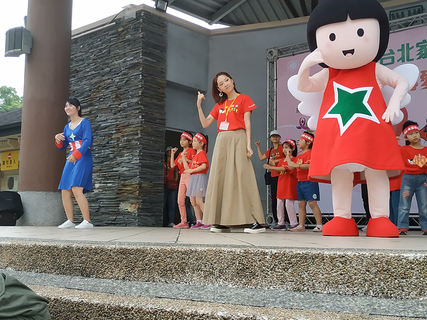 藝人翁馨儀穿著家扶的紅色上衣,在台上與小朋友開心跳著舞,呼籲民眾培養親子良性互動!台北家扶中心28日舉辦親子活動,希望藉由多樣的互動關卡,拉近親子間的關係。活動上除邀請翁馨儀擔任宣傳大使外,打扮成遊戲人物...