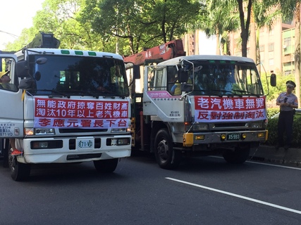 「老車無罪!還我路權!」針對《空污法》將加嚴出廠10年以上的交通工具排放標準,衝擊全台7.3萬輛的一、二期大型柴油車。全國大貨車業者15日串聯500輛車主赴環保署抗議,認為空污防制責任不應轉嫁給老車司機承...