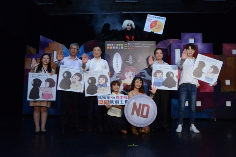 穿著神力女超人戰鬥服的「美美」,手拿NO的盾牌,與學生一同抵抗2米高的毒品惡魔,幫助學生拒絕毒品。「紙風車青少年反毒戲劇工程」21日舉辦反毒記者會,現場還演出2段反毒戲劇及由插畫家H.H.所繪製的《拒毒八...