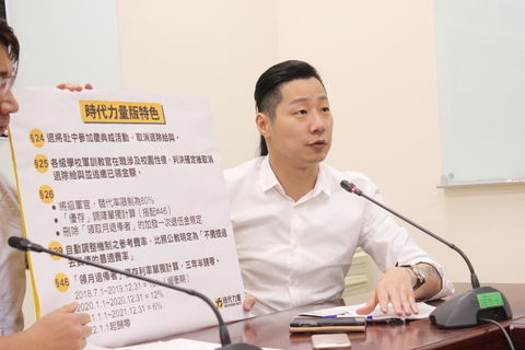 立法院9日將逐條審查軍改草案,時代力量黨團軍改版本8日出爐。立委林昶佐強調,時力秉持「保障中低階、高階有所限制」原則,傾向支持政院版,新增赴中國參加慶典或活動的退將取消退除給與、將級軍官所得替代率調整為8...