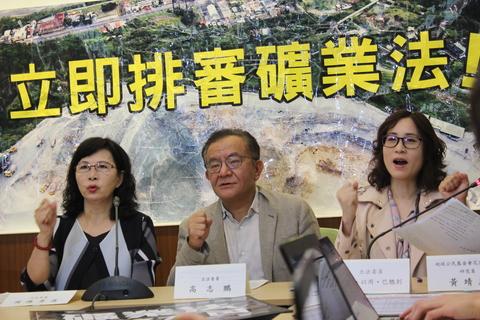 「如果沒經過土地所有權人同意就開礦,跟土匪沒兩樣。」《礦業法》9日續審,將「原住民知情同意權」等爭議條文保留,引發時代力量立委高潞・以用、親民黨立委周陳秀霞、民進黨立委高志鵬及環團的不滿,痛批經濟部放任「...