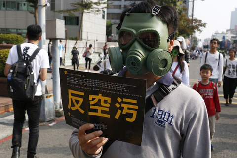 高雄連續4日空污「紅害」變毒氣室,讓民眾忍無可忍!「要健康婆婆媽媽團」高雄團長洪秀菊21日與30多位民眾在市政府前抗議表示,「高雄市政府面對空污不應默不做聲,速比照其他縣市定禁燒生煤條例!」環團也一度與警...