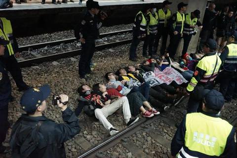 為阻修勞基法,勞團接連發起多場抗議行動,8日晚間,部分工會成員忍無可忍,選擇臥軌抗爭,卻也引發民眾不滿,桃園市產業總工會秘書吳嘉浤強調,「若旅客一時的不便,可換來下一代因過勞而永遠『無法回家』是很值得的。...