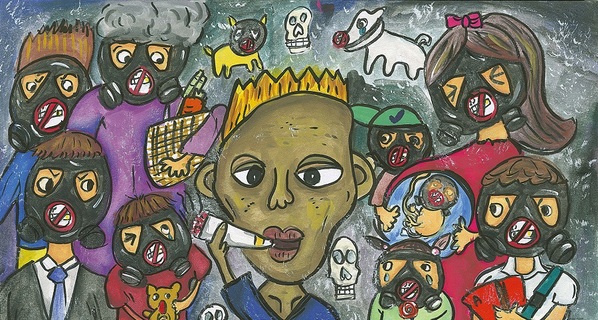 「二手菸和三手菸都會傷害大家的健康!」獲得「2017無菸的家著色繪圖比賽」國小高年級組特優的唐同學將菸害比喻為毒氣,在畫作中所有男女老少、甚至動物都戴上防毒面具,顯示菸害的可怕性。國健署副署長游麗惠24日...
