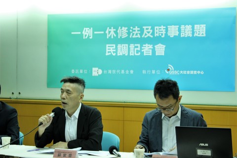「一例一休」再修法,將鬆綁七休一制度,輿論怒聲連連,但台灣世代智庫13日公布民調指出,66.6%民眾贊成修法,不贊成的比率僅15.3%。淡江大學整合戰略與科技中心執行長蘇紫雲和民進黨立委羅致政一致認為「不...
