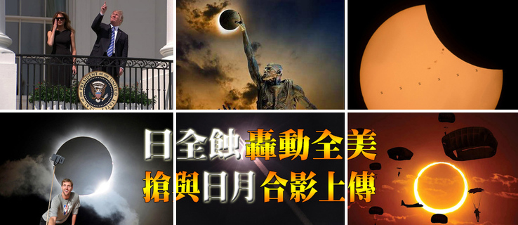 日全蝕21日在美國登場,吸引全美民眾與世界各地許多天文愛好者前往朝聖,觀看百年難得一見的日全蝕。為了將這難得的一刻永留紀念,許多民眾、政治人物,或是明星,都「想盡辦法」跟日全蝕合影,為的就是要跟上潮流,並...