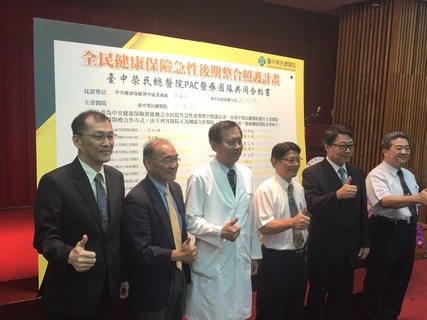 配合健保署七月開始實施的「全民健康保險急性後期整合照護計畫」,台中榮總邀集34家院所成立「PAC醫療團隊」,25日舉辦跨院共同簽約儀式。未來除腦中風、燒燙傷之外,將再納入創傷性神經損傷、脆弱性骨折、心臟衰...