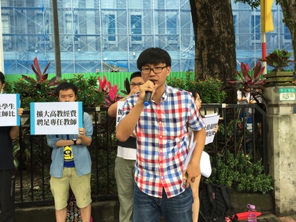 「生師比超標,教育部別包庇!」「境外生也是學生,全體納入生師比!」反教盟在教育部外高喊口號,反對大學調漲學費。反教盟學生謝毅弘怒斥教育部任意計算生師比,進而放任大專院校調漲學費。教育部高教司專員譚以敬對此...