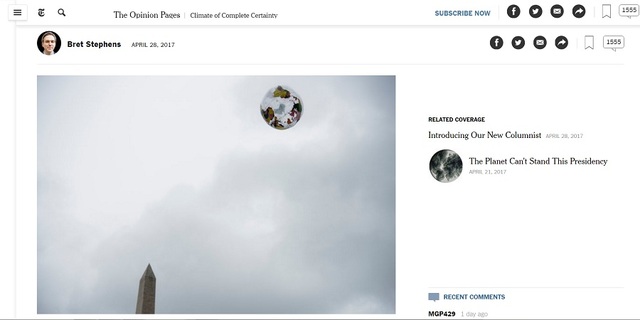 《紐約時報》新來了一位專欄作家史蒂芬斯(Bret Stephens),上周末,《約時》刊出了他上任後的第一篇專欄,不料引起軒然大波,很多讀者竟然因此退報,紐時總部外也出現抗議人群。原來是自由派大本營的《紐...