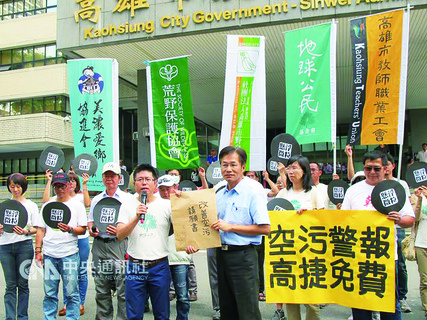 長期關注台灣空汙問題的地球公民基金會1日舉行「改善空汙3大訴求」記者會,邀請多名高雄環團代表、高雄市民在高雄市政府廣場表達訴求,並遞交請願書給高雄市政府代表,希望在2日行政院環保署舉行的「空氣汙染防制策略...