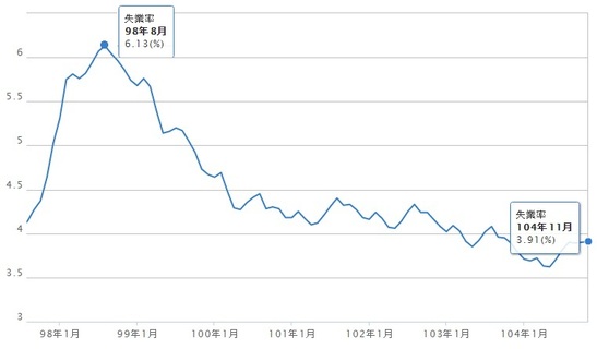 主計處公布11月失業率為3.91%,回到2008年2月的3.9%水位,為8年來次低。另經濟部資料指出,10月分增加的新工廠數為373家,工廠歇業家數及自行辦理歇業家數也有439家,然而合計9月歇業工廠家數...