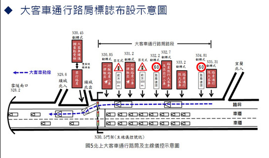 國道5號北上宜蘭往坪林方向,高工局試辦大客車行駛路肩,估計將節省12分鐘行車時間。高速公路局交管組組長卓明君10日表示,「路肩本來是為緊急狀況車輛通行,試辦期間將安排公警9隊駐點,若有情況仍可協助緊急車輛...