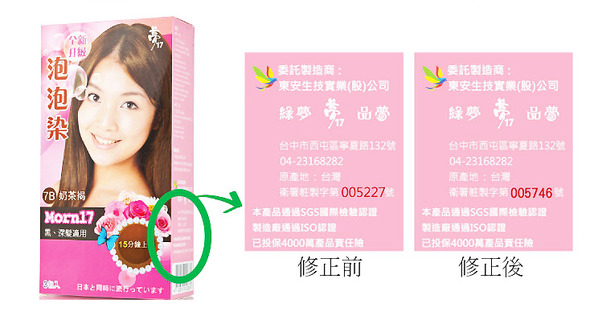 「夢17泡泡染髮乳」被查出與原查驗登記不符。食品藥物管制署19日公布抽查130件染髮、燙髮及防曬類化妝品結果,食藥署研究檢驗組科長黃守潔表示,除了「夢17泡泡染髮乳」標示不符合外,還有其他商品被檢驗出醋酸...