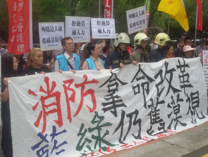 「殉職是人禍,藍綠是幫兇!」消防員工作權益促進會19日集結在內政部,抗議藍綠執政16年來漠視消防員過勞、人力不足等問題,並呼籲藍綠總統候選人提出改革政見。對此,立委盧嘉辰呼籲各候選人回應訴求。立委莊瑞雄則...
