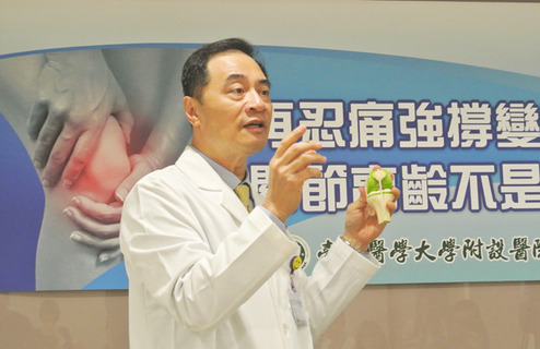 更換膝關節讓年長者重新站起來!一位原本無法站立的92歲病患,在進行換膝關節手術後已可以行走。台北醫學大學骨科主治醫生陳健煜在記者會表示,大部分年長患者經過健保給付做換膝關節手術後,即可回歸正常生活。不過陽...