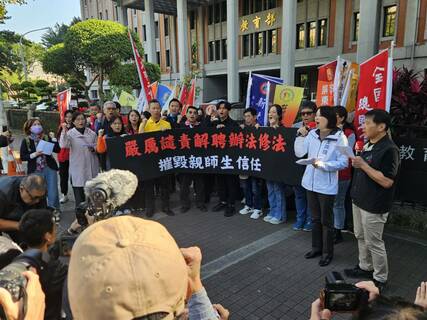 「老師上課前還跟學生求情說:『拜託別告我!』這是正常教學環境嗎?」國民黨立委王鴻薇質疑。 「教育部新的《解聘辦法》仍未解決校園事件濫訴問題,恐讓老師心理壓力更大!」全教總等教師團體13日在教育部門口...