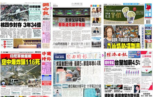 士林地檢署偵辦八仙樂園彩色派對塵爆案,初判由於八仙不知粉塵危險,恐躲過刑責成為《蘋果日報》1日頭版頭條。而全球6月30日因為秒而多出一秒,藉由電腦進行交易的全球金融市場首當其衝則為《台灣醒報》的頭版頭條。...