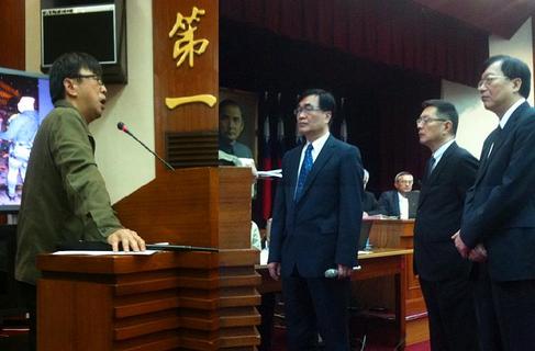 立委段宜康揮舞鋼製警棍,要江揆立刻道歉。立法院內政委員會26日邀請內政部、警政署等,針對行政院驅離行動進行專案報告,並播放警方被民眾攻擊的影片。警政署長王卓鈞指出,他會對警察相關的疏失負責,但還不是下台的...
