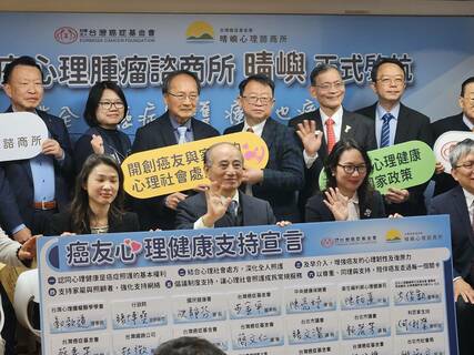 「未來心理諮商室將升級為所,服務能量增加5倍,提供癌友5大協助!」癌症基金會5日舉行記者會,宣布旗下諮商室升級為諮商所,諮商室從1間增加到5間,癌友每人可免費5次心理諮商,並提供癌友營養、經濟、家庭照護、...