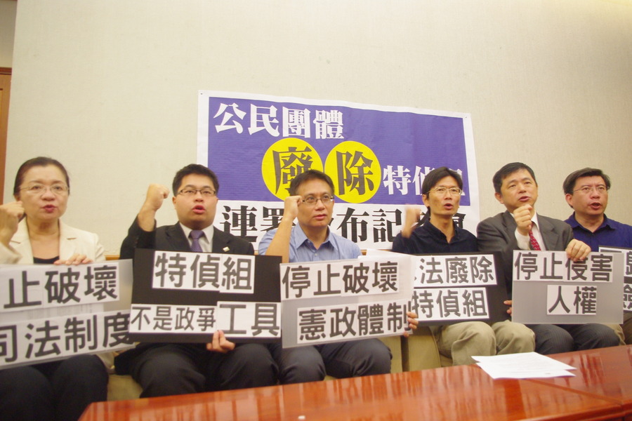 「特偵組是混亂國家體制的違章建築,」陪審團推動聯盟召集人鄭文隆表示,連署廢除特偵組,短短2、3天內就得到快50個公民團體的支持,連非法政訴求的團體也表達支持。包括民間司法改革基金會、中華民國法制改造促進會、台灣守護民主平台、公民監督國會聯盟等團體都紛紛參與連署,訴求特偵組不應淪為政治鬥爭工具,政府應廢除特偵組,回歸正常的檢察體制。
