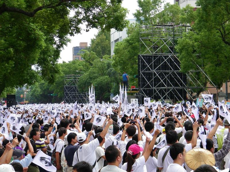 「不為政黨政客利益血戰,所以在國會門口升旗。」1985公民聯盟群眾,頂著30度的高溫,上萬公民穿著白衣於10日上午湧入林森南路和中山南路,在立法院前升起白底繪有一隻眼睛的公民旗。升起公民旗後,將國、民兩黨黨旗綁在一起並降半旗,哀悼公民權不彰,全場公民齊唱改編自電影《悲慘世界》主題曲的〈你敢有聽到咱ㄟ歌〉。