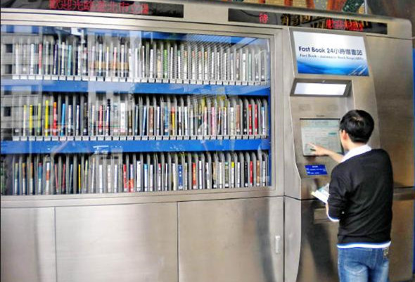 松山車站設「fastbook自動借還書服務站」,借的書還能到台北市立圖書館轄區內的分館歸還。 (photo by 台北市立圖書館)