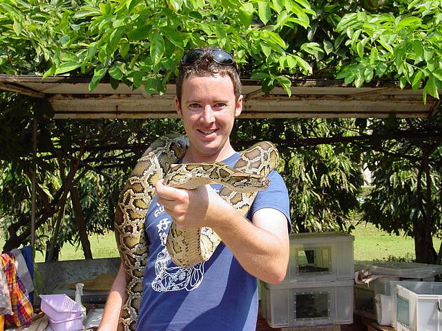 【台灣醒報記者莊瑞萌綜合報導】蟒蛇上身按摩讓人壓力全消?印尼峇里島一處度假村提供了另類「駭人」蟒蛇按摩服務,按摩師傅幫上門的男女客人披上一隻隻巨大蟒蛇,讓牠們爬在客人身上,藉由蟒蛇在肌膚上產生的觸感,達到按摩與讓腎上腺素上升的目的,紓壓的效果據說相當良好,不過,蟒蛇SPA服務一次要價47美元,約台幣1381元,是當地一般SPA按摩費用3倍之多。