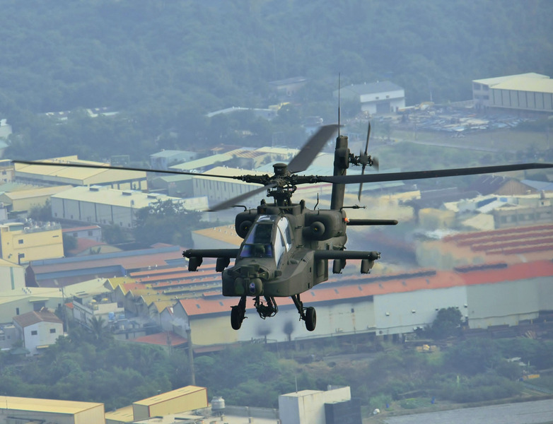 AH-64E阿帕契直升機是美國陸軍現役機型,最高時速可達293公里,可續航1900公里;並配備30公釐機砲,可掛載8到16枚地獄火反戰車飛彈或火箭彈,或選掛BAIM-9響尾蛇、AIM-92刺針、BGM-71拖式等型飛彈,空對地作戰能力甚佳。