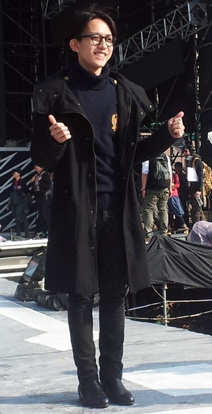 跨年彩排太陽露臉溫度升高,林宥嘉一身黑色大衣在進行彩排,直撥頭髮,顯然是太熱了。(photo by 張菀庭/台灣醒報)