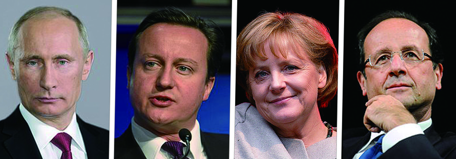 【台灣醒報記者賴義中綜合報導】過去24小時內,各國元首相繼發表新年談話,宣示願景。俄國總統普丁矢言將根除國內恐怖分子足跡,奮戰到底。英國首相卡麥隆試圖在元旦挽回蘇格蘭人民的心,保持英國版圖完整。法國總統歐蘭德向右轉,期許企業能在政府優惠下協助解決失業。德國總理梅克爾期許國民勇敢做夢與實現自己。北韓最高領導人金正恩戲劇性宣告,朝鮮半島將有可能面臨戰爭與核災。