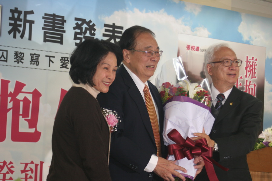 【台灣醒報記者李慕義台北報導】「誰願放下名利,走入囚黎?」前行政院長張俊雄16日發表新書《擁抱生命-從閣揆到終生志工》,敘述其於2008年卸下行政院長光環後,走入全台灣各大監獄輔導受刑人的點點滴滴。發表會現場冠蓋雲集,終生志工孫越、高檢署檢察官陳守煌、更生團契總幹事黃明鎮等人都到場祝賀,現場也湧進上百位支持民眾,場面熱鬧。