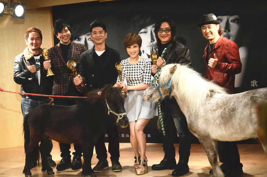 【台灣醒報記者彭書穎台北報導】迷你馬大鬧李婭莎新專輯現場!上海姑娘李婭莎在2013年以專輯《愛》成為第一位中國籍金曲獎台語歌后後,被公司寄予厚望,20日的新專輯記者會上,不僅請來多位金曲得主施文彬、荒山亮祝賀加持,更特地請出兩頭迷你馬,祝賀李婭莎在馬年「一馬當先」、「馬到成功」,李婭莎和幾位特別來賓看到小馬出場,樂得和牠們合照。