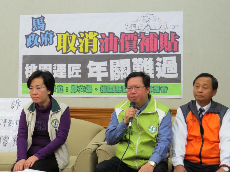【台灣醒報記者鄒焌弘台北報導】針對桃園縣計程車起程價調漲15元,但運將每月2千元油價補貼卻被無預警取消,民進黨桃園黨部主委鄭文燦27日帶著3位桃園運將代表,北上陳情,表示若桃園縣與交通部未達成協議,不排除聯合6千名司機發動大規模抗爭。桃縣交通局表示,已和交通部商議,2月初會有結果。
