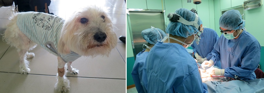 興大獸醫院收治的犬隻,2013年底因心臟二尖瓣膜變形及腱索斷裂,出現莫名昏倒、心臟衰竭等症狀,透過藥物已無法治療。在日本小型動物心臟外科權威上地正實、台北專心動物醫院醫師洪榮偉、興大獸醫院麻醉暨重症加護科主任王咸棋,以及外科總醫師林建良等人合力診治,進行長達12小時的心臟瓣膜修補手術;術後犬隻二尖瓣血液逆流情況明顯改善,體力也逐漸恢復正常。