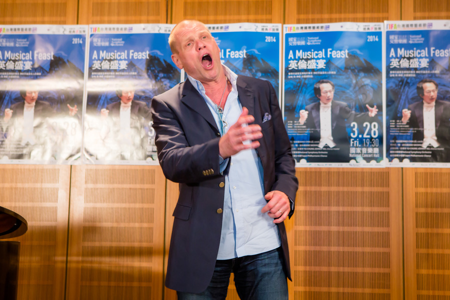 【台灣醒報記者杜胤廣台北報導】被歐洲譽為「費雪迪斯考」接班人的丹麥男中音史柯弗斯,魁梧的身形,一派瀟灑的打扮,與NSO總監呂紹嘉、台北愛樂合唱團,共同出席25日的音樂會記者會,開場就獻唱《伯沙撒王的盛宴》中的一小節,充滿磁性的聲線,形似「醉漢」的轉音與唸唱,唱出《聖經》故事中,伯沙撒王在一場盛宴中褻瀆以色列神,遭遇毀滅的故事高潮。